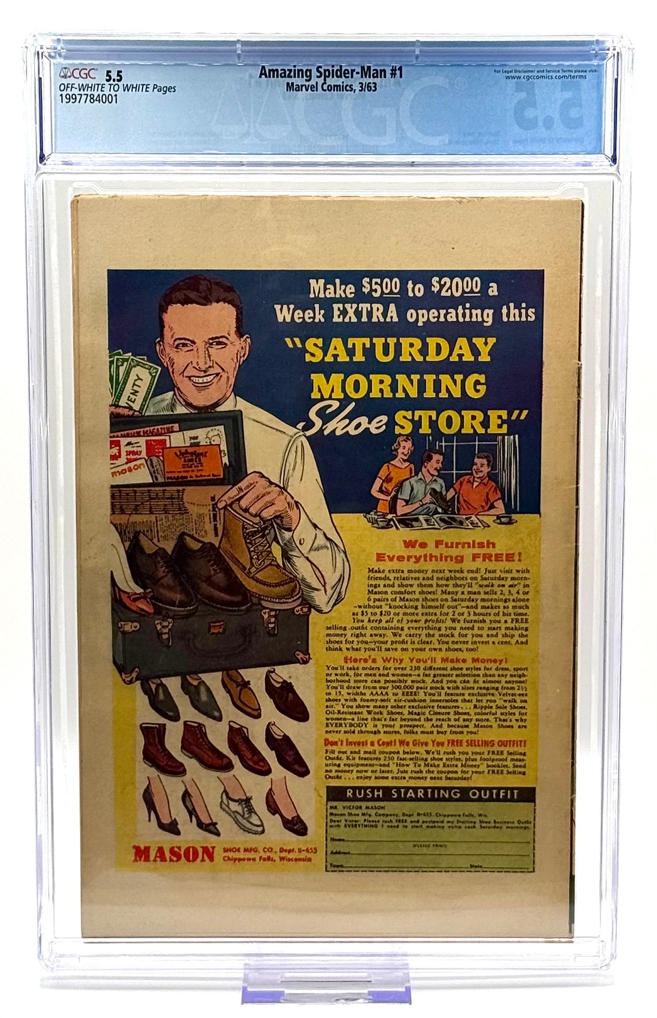 Cover pencils by Jack Kirby, inks by Steve Ditko. Spider-Man, script by Stan Lee, art by Steve Ditko; Spider-Man origin retold; J. Jonah Jameson introduced; Spider-Man rescues John Jameson, J. Jonah Jameson's son, from his malfunctioning space capsule. Spider-Man vs. The Chameleon, script by Stan Lee, art by Steve Ditko; Spider-Man tries to join the Fantastic Four and stops the Chameleon. Reprinted in Marvel Tales # 138. 36 pgs. $0.12. Cover price $0.12. OW-W Pages.