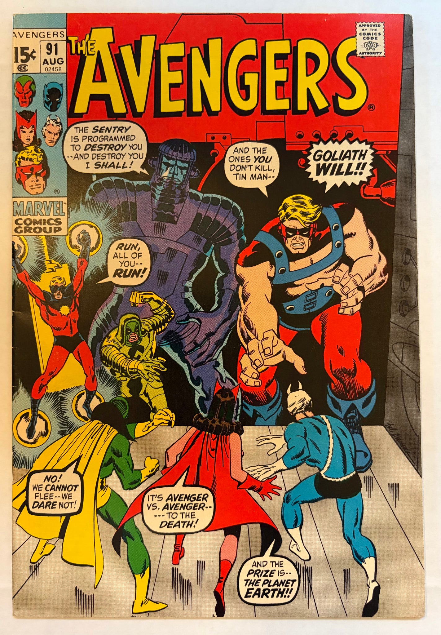 Battle features Captain Marvel, Goliath, Quicksilver, Rick Jones, Scarlet Witch, and the Vision vs. Sentry 459 and Ronan